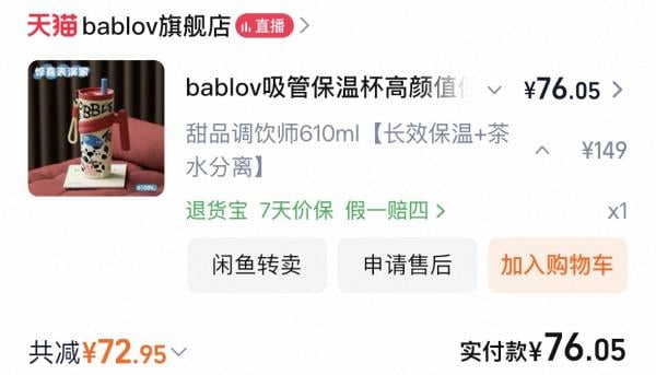 【网购】bablov吸管保温杯