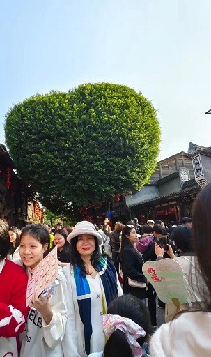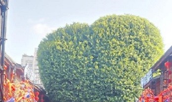 爱心树前熙熙攘攘的游人