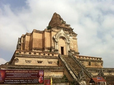 又名大佛塔寺, 清迈 市内六大寺庙之首, 清迈 城内人气最高历史最悠久的寺庙,以最古老、最高的残顶大佛塔而闻名,创建于1411年兰纳王朝盛勐玛王时期,集 印度 、锡兰风格于一身的四方形佛塔,后因发地震和大风灾,佛 塔塔 尖塌毁。