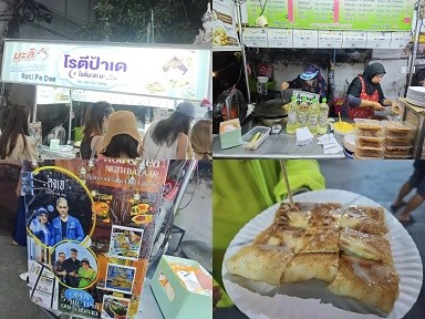 在Tha Pae路上的烤餅(Wat Mahawan摩湾寺 วัดมหาวัน门口),只有晚上才营业。