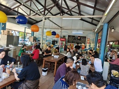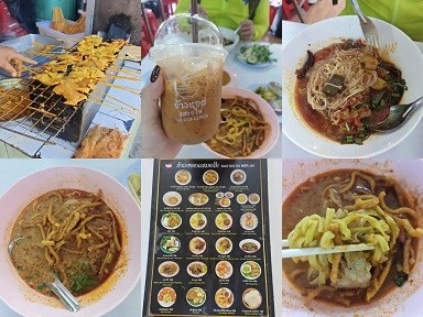 地址:391 Mu.2,Charoen rat Road,Tambon Fa Ham ——在s48酒店的旁边,人气超旺的当地小“脏”馆,味道好价格便宜,极力推荐,招牌是泰北咖喱面+沙爹鸡肉烤串,酸辣面也不错,还有盖饭,都是当地人在用餐,不是游客去的网红,性价比极高,人均不过10多块钱人民币,吃过让人念念不忘,超级浓郁有味道的咖喱汤底。