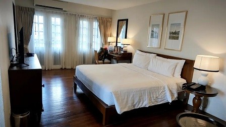 南洋法式风格,小环境拿捏的不错,酒店面积不大,大门藏在巷子里不明显,住着很舒服,下次来可以再选这里。 优点是前台有中文服务,地理位置很好,打车接单很快,可以走着去宁曼路,周围吃的多,门口100米有烧烤摊、makro超市和711。 唯二的缺点是地漏下水慢,不注意容易开河,门窗隔音不好,晚上车声飞机声狗吠人喊相当清楚。