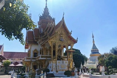 这里始于 17 世纪末 缅甸 时期,19 世纪末由 缅甸 柚木商人出资重修,所以是泰缅风格的寺庙。