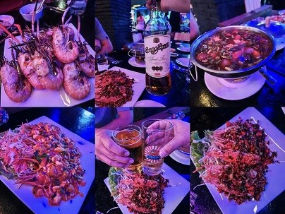 环境没的说,推荐吃晚饭。在露天河边位置坐下,来 泰国 必点的就是冬阴功汤,橙红色的汤汁酸辣开胃,香茅、柠檬叶和高良姜的气息扑面而来。大虾肉质弹牙紧实,辣度刚够唤醒味蕾,紧接着咖喱鸡配薄饼、生腌螃蟹、青木瓜 沙拉 、炸蘑菇、菠萝饭(必点)一道道尝起来,还带有驻唱,最好提前订位哦。