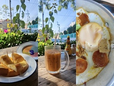 店名:Black Gooseberry (Chiangmai) 地址:RX47+GH5, Tambon Chang Phueak, Mueang Chiang Mai District, Chiang Mai 50300 泰国 ——只收现金的漂亮饭,55泰铢的煎蛋印象深刻,加了炸洋葱末和千页豆腐(好吃)。四色吐司完全是在吃色素,4款酱汁味道都一样,类似泰奶+炼乳的味道,如果顶着大太阳,特意来打卡实属没必要