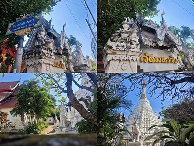 又是一个比较小众的寺庙——摩湾寺Wat Mahawan ,就在塔佩门外屏河之畔,这里远离了古城的喧嚣,漫步经过此地,正巧看见纯白的佛塔沐浴着泰北的阳光,午后光影漫过三重屋檐,佛堂的寂静,比游客聚集的喧嚣更治愈人心。