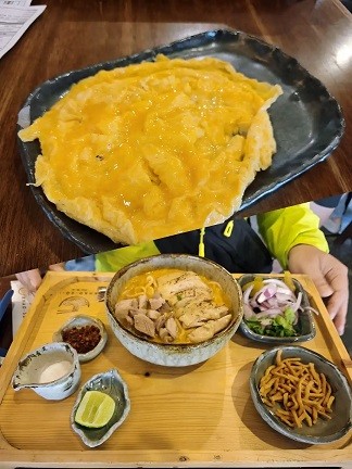 地址:14 Nimmanahaeminda Road, Suthep, Mueang Chiang Mai District, Chiang Mai 50200 泰国 ——主营泰北家常菜,因为旁边的网红咖喱面人太多,改在这里,被门口的广告图片吸引(还售罄)随便点了个套餐,味道还挺不错的,追求性价比的话不用考虑这里,同样的东西小摊贩便宜很多。